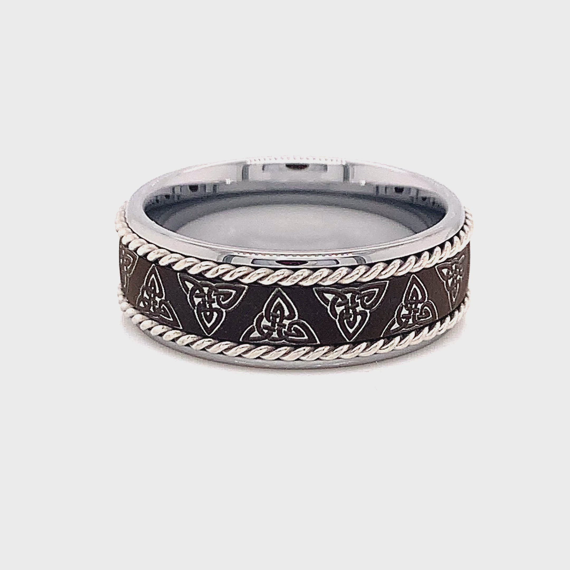 8mm Custom Made Tungsten Ring with Matte Black Exterior, Twisted Rope Inlay and Celtic Knot Engravings